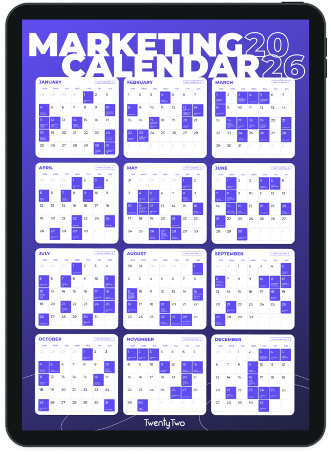 Great marketing starts with good planning. Be in the know next year, with every big moment and seasonal event ready for you in one free calendar. 🔥 It's your official marketing cheat sheet for 2026!